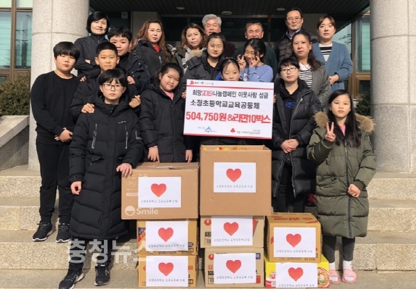 세종특별자치시 소정면 소정초등학교(교장 박대응)가 20일 알뜰바자회에서 거둔 수익금 50만 원과 라면 10박스를 희망2019나눔캠페인 이웃사랑 성금으로 기탁했다.