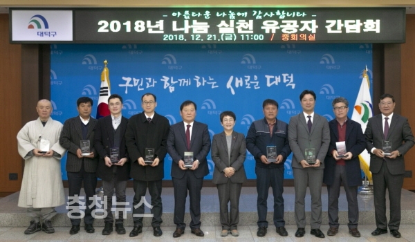 대전 대덕구(구청장 박정현)는 지난 21일 중회의실에서 올 한 해 동안 지속적인 기부를 통해 이웃사랑을 실천하고 나눔 문화 확산에 기여한 21개 기업 및 단체에 감사패를 수여했다.