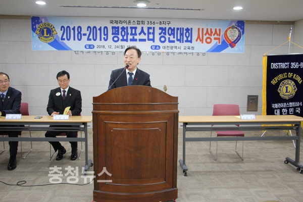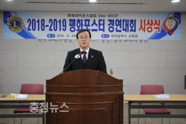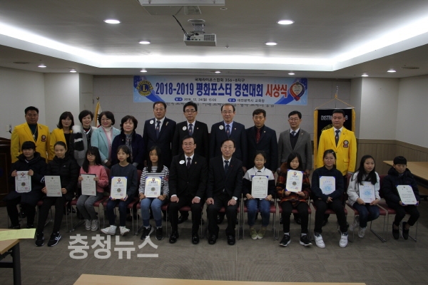 국제라이온스협회 356-B지구 김홍호 총재는24일 대전광역시 교육청에서 2018-2019 평화포스터 경연대회 시상식을 개최했다.