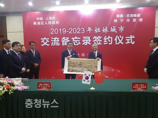 충남 보령시는 지난 21일부터 24일까지 김동일 시장 등 관계자가 참석한 가운데 중국 상해시 청포구를 방문해 제5차 자매결연을 체결하고 오는 2023년까지 양 도시 간 교류일정을 확정했다.