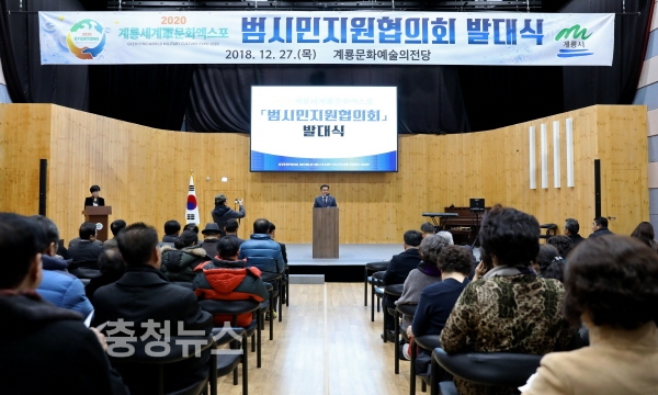 계룡시는 27일 2020년에 개최하는 계룡세계軍문화엑스포를 전폭적으로 지원할 ‘범시민 지원협의회’(이하 시민 협의회)를 발족했다고 밝혔다.