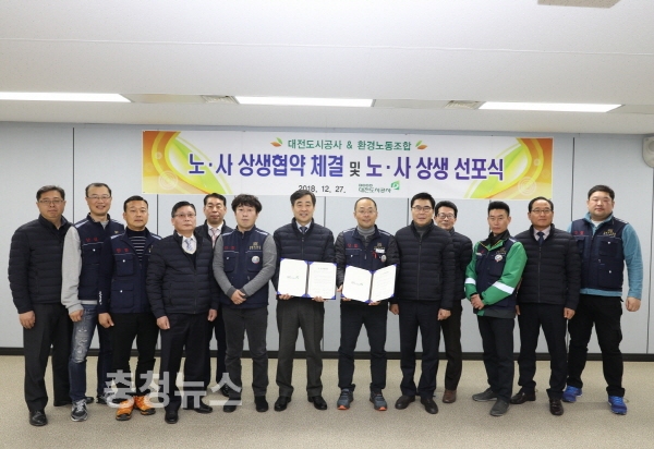 대전도시공사와 환경노동조합이 존중과 배려의 노사관계 재정립을 다짐하는 상생협약을 체결했다.