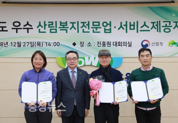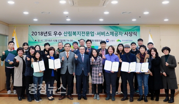 산림청 한국산림복지진흥원(원장 윤영균, 이하 진흥원)은 대전 서구 진흥원 대회의실에서 산림복지전문업과 서비스제공자 등 관계자 50여 명이 참석한 가운데 ‘2018년 우수 산림복지전문업·제공자 시상식’을 개최했다고 27일 밝혔다.