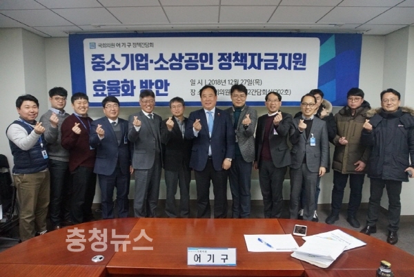 더불어민주당 어기구 의원(국회산업통상자원중소벤처위원회·충남 당진시)이 27일, 국회 의원회관 제2간담회의실에서 '중소기업•소상공인 정책자금지원을 위한 효율화 방안'을 주제로 정책간담회를 개최했다.