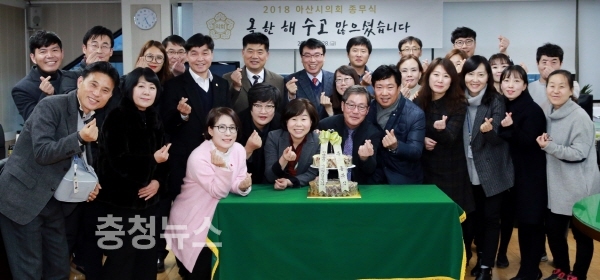 아산시의회(의장 김영애)는 지난 28일 오후 5시 의장실에서 시의원과 사무국 직원 등 30여명이 참석한 가운데 “2018년도 종무식을 개최했다”고 31일 밝혔다.