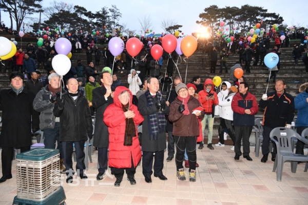 또한 가족, 친구와 함께 참여한 사람들은 예산군새마을회가 준비한 떡국을 나눠먹고 일출에 맞춰 1100개의 소망풍선을 날리며 기해년 새해의 힘찬 출발을 축하했다.