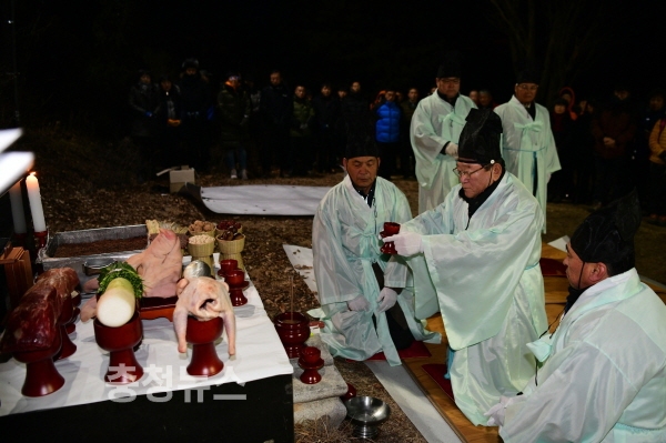 충남 홍성군이 지난 1일 오전 7시 백월산에서 김석환 군수를 비롯한 1,000여 명의 군민이 참여한 가운데 홍성군의 번영과 안녕을 기원하는 영신 고천대제를 성황리에 개최했다.