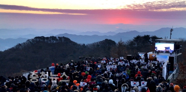 해발 596m 산 정상의 해맞이 광장 도착 후, 희망찬 새해맞이를 위해 일출을 앞두고 지신밟기와 촛불염원 등 화합의 시간과 대고(大鼓) 공연이 펼쳐져 새해 첫 동이 트기 전 분위기를 한층 고조시켰다.
