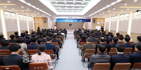 충남 서산시가 2일 시청 대회의실에서‘2019년 시무식’을 열고 기해년(己亥年) 새해의 힘찬 발걸음을 내딛었다.