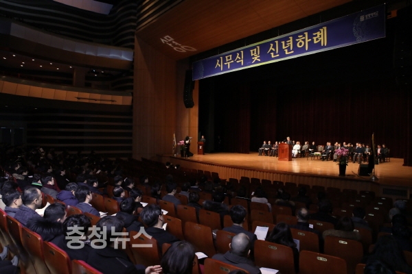 유경원 교무처장의 사회로 시작된 시무식은 이사장, 총장, 부총단의 신년사와 상명 성악 앙상블의 축하공연이 이어졌다.