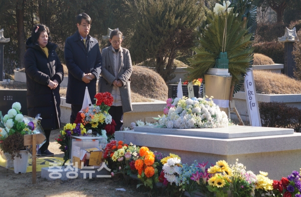 정의당 대전시당은 모란공원을 찾아 故노회찬 의원 묘역과 전태일 열사 묘역을 참배하며 시무식을 개최했다.