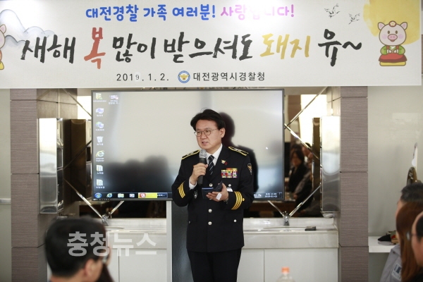 대전경찰청(청장 황운하)이 2일 시무식을 갖고 시민 중심의 고품격 치안서비스를 제공하겠다는 각오를 다졌다.