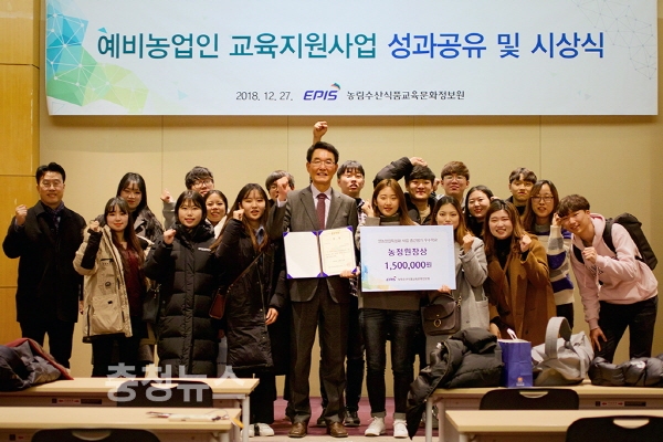 농림수산식품교육문화정보원이 지난해 12월 27일, ‘예비농업인 교육지원사업 성과공유 및 시상식’을 개최한 가운데 충남대 영농창업특성화사업단은 사업이 시작된 지난 2016년부터 18년까지의 운영성과에 대한 중간평가 결과 ‘S등급’을 받았다.