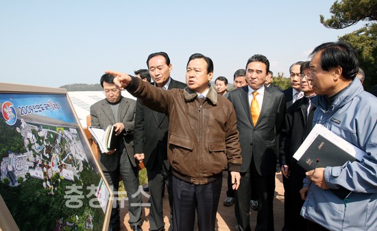 이완구 충남도지사는 9일 안면도꽃박람회 조성 현장을 순방하고 조직위원회 관계자로부터 회장 조성 현황을 보고 받았다.