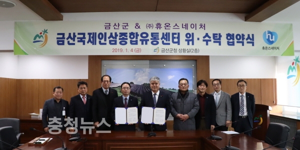 충남 금산군은 지난 4일 군청 2층 상황실에서 주식회사 휴온스네이처(대표 천청운)와 금산국제인삼종합유통센터 위·수탁 협약을 체결했다.