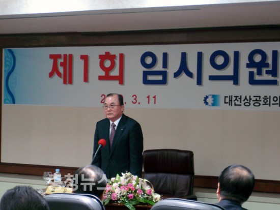 대전상공회의소는  11일 오전 11시 대전상의 4층 의원총회실제1회임시회의 총회를 열고 송인섭 현회장을 만장일치로 추대하고 임원 선출을 단행했다.