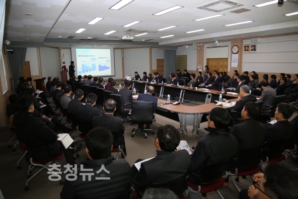 충남 금산군은 지난 8일 문정우 금산군수 주재로 실・과・단, 직속기관・사업소의2019년도 업무계획 보고회를 개최했다.