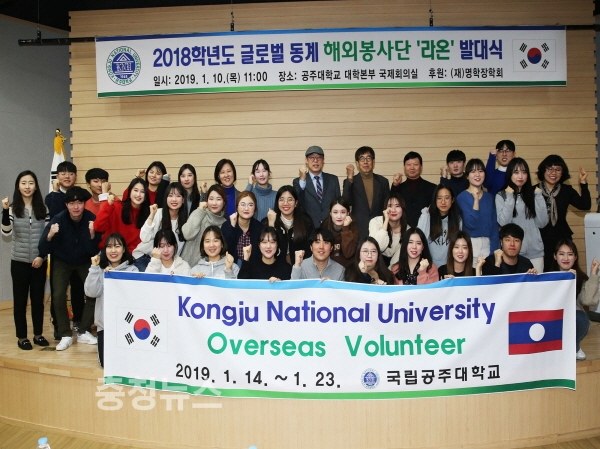 공주대학교(총장직무대리 박달원)는 오는 14일부터 23일까지 9박 10일간 조근자 단장을 비롯한 부단장, 학생 등 총 31명으로 꾸며 라오스 비엔티안 및 방비엥 지역에서 글로벌 동계 봉사활동을 펼친다고 10일 밝혔다.
