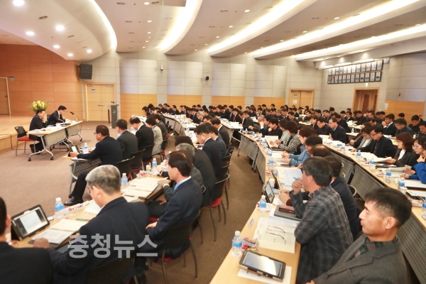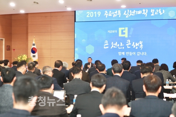 충남 천안시는 14일 시청 대회의실에서 5급 이상 간부, 6급 이하 직원 등 150여명이 참석한 가운데 ‘2019년 주요업무실천계획 보고회’를 개최했다고 밝혔다.