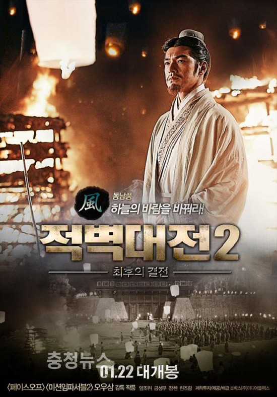오는 24일 오후 3시 30분과 7시 2회에 걸쳐 청양문예회관 대공연장에서 상영하는 ‘적벽대전2’ 영화는 할리우드가 인정한 액션 명장 오우삼 감독이 18년 동안 야심차게 준비한 꿈의 프로젝트로 최고의 베스트셀러 ‘삼국지’의 클라이맥스이자 아시아 역사상 가장 치열한 전투로 손꼽히는 ‘적벽대전’을 다룬 영화다.