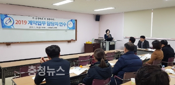 충남도교육청(교육감 김지철)은 18일 충청남도학생수련원에서 도내 교육지원청 계약팀장과 담당자 40여명을 대상으로 연수를 실시했다.