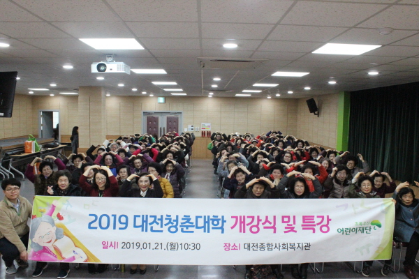 어린이재단 대전종합사회복지관 대전청춘대학은 21일 개강식을 시작으로 노래, 요가, 우리춤체조, 건강라인댄스, 배움종합반, 기공체조프로그램 뿐 만 아니라 노년기에 유익한 주제로 특강을 실시하며,