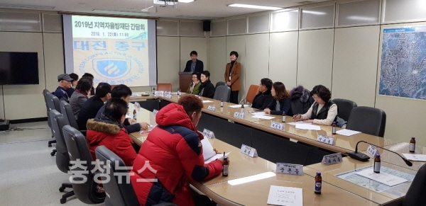 대전 중구(구청장 박용갑)는 22일 청사 재난안전상황실에서 20여명의 지역자율방재단원과 간담회를 가졌다.