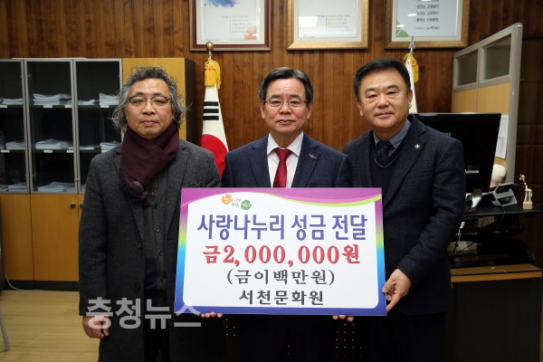 서천문화원(원장 이관우)은 지난 21일 서천군을 방문해 관내 어려운 이웃들에게 써달라며 성금 2백만 원을 기탁했다.