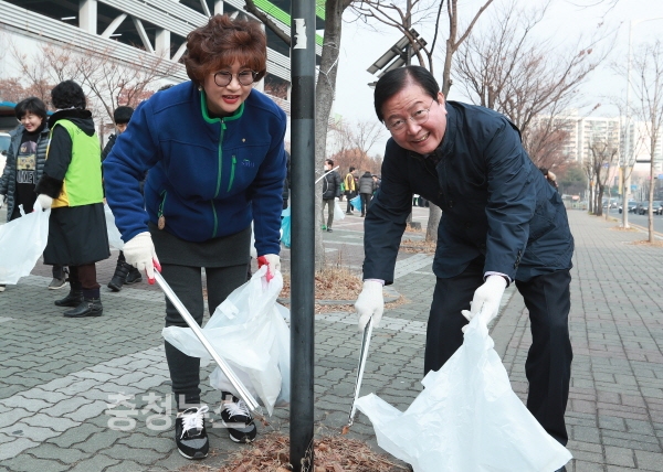 대전 서구는 23일 월평동 신촌네거리 주변 상가 밀집 지역에서 장종태 구청장을 비롯한 월평1동 13개 단체, 이마트 트레이더스, 환경과 및 월평1동 행정복지센터 직원 60여 명이 참여한 가운데 생활 주변에 적치된 쓰레기와 광고물 제거 등 설맞이 환경정비를 실시했다고 밝혔다.