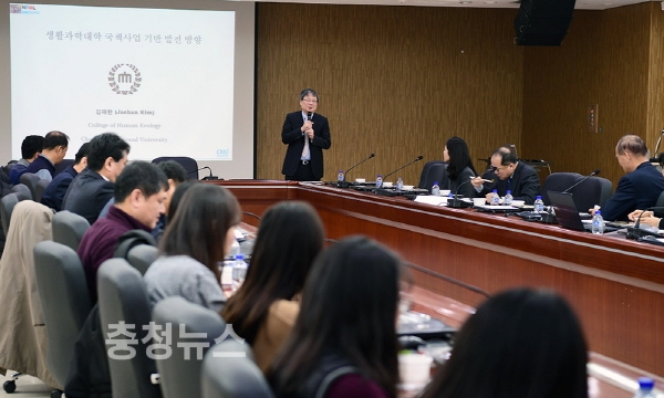 김재한 학장은 ‘지역과 함께하는 생활과학대학’을 주제로 거점국립대학의 지역기반 사회 공공성 강화를 제안했다. 이에 대한 예시로 국립대학 육성사업(PoINT) 지원을 통한 국방생활증진사업, 50세 이상의 장.노년층 교육센터 설립 및 운영 등을 소개했다.