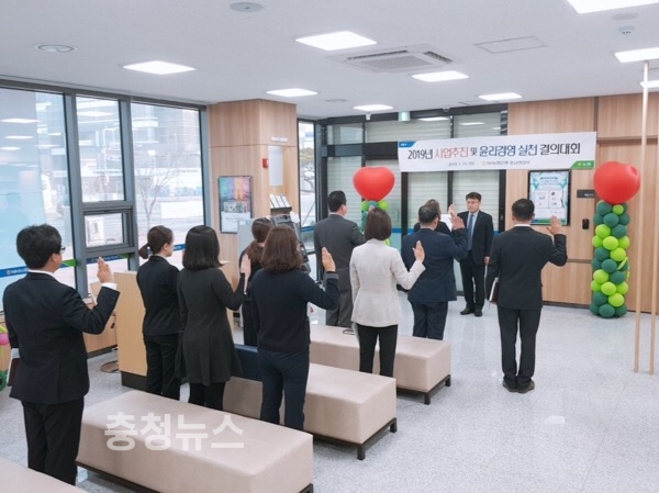 NH농협은행 충남영업부(부장 진문종)는 25일 내포신도시 소재 영업부 객장에서 「2019년 사업추진 및 윤리경영 실천결의대회」를 개최하였다.