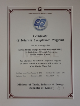2014년 무형기술이전에 대한 법규 제정을 계기로 연구원은 해외 원자력기술 수출활동의 투명성 제고 목적으로 해당 프로그램을 도입하고, ▲운영 인력 구축 ▲자체 감사를 통한 규정 이행실적 평가 ▲직원 대상 프로그램 교육 등 국제 규격에 부합하는 운영관리 체계를 구축해왔다.