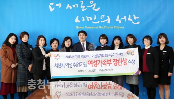 충남 서산시가 지난 25일 서울 세종문화회관에서 열린 ‘2018년 전국 새일센터 사업운영평가’에서 최고상인 여성가족부 장관상을 수상했다.