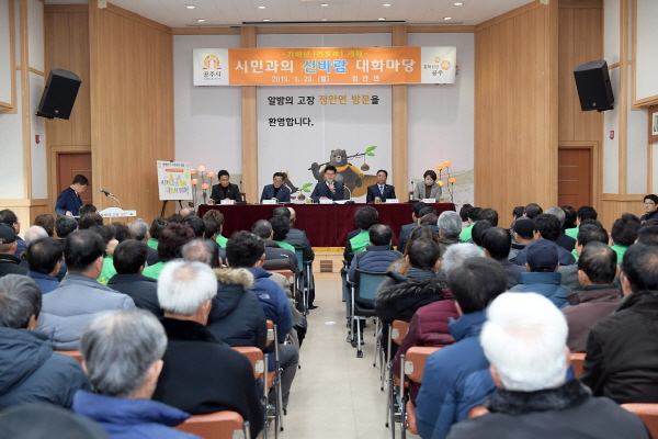 김정섭 공주시장이 기해년(己亥年) 새해를 맞아 16개 읍·면·동을 순회하며 시민과의 대화를 실시하고 있는 가운데, 28일 정안면을 방문했다.