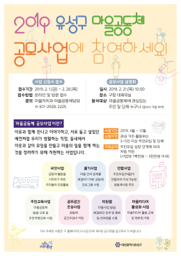 신청기한은 2월 28일까지이며, 신청 서류는 유성구 홈페이지를 참고하고, 자세한 내용은 유성구 마을자치과 마을공동체담당(042-611-2539)에 문의하면 된다.