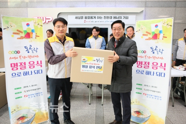 한국동서발전(주) 당진화력본부는 30일 본부 내 1층 로비에서 설 명절을 맞아 「사랑의 설 명절 음식 나누기」행사를 시행했다.