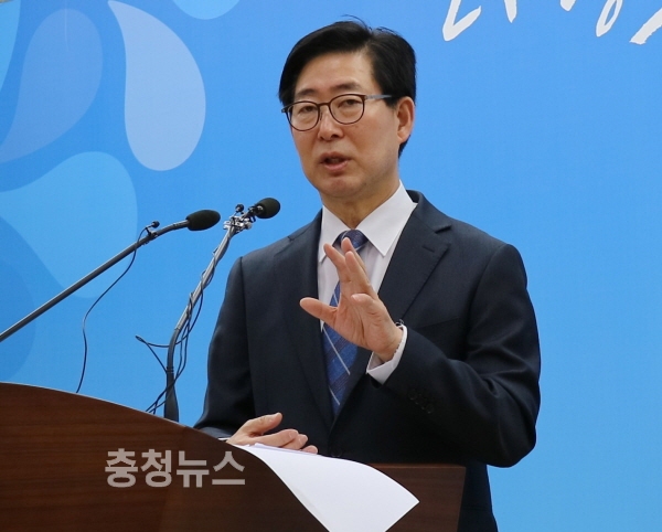 양승조 충남도지사가 30일 자동차 부품산업 위축에 따른 대응 대책을 발표하고 있다.
