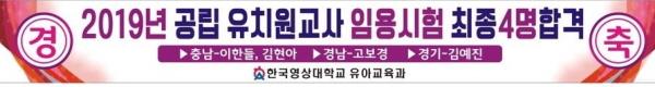 한국영상대학교(총장 유재원) 유아교육과 졸업생 및 졸업예정자 4명이 ‘2019학년도 공립 유치원교사 임용고시’에 최종 합격했다. 이로써 한국영상대는 2015년부터 현재까지 5년 연속 공립 유치원교사를 배출했다.