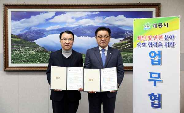 계룡시와 건양대학교 산학협력단은 재난 및 안전관리 분야 상호협력을 위해 힘을 모았다.