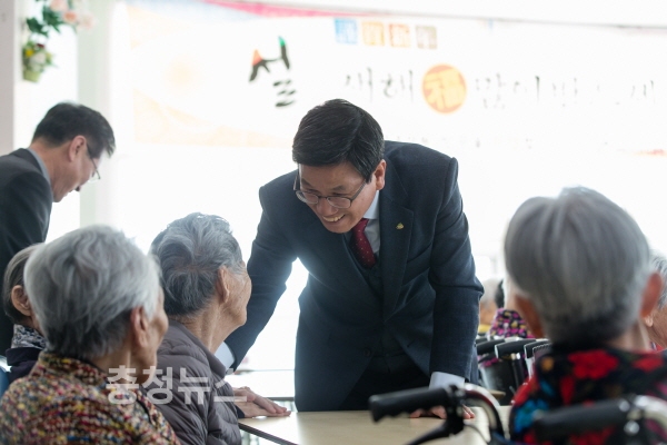김돈곤 청양군수가 민족 고유명절인 설을 앞두고 지난 30일 청양군노인요양원을 비롯해 군내 요양원을방문, 입소 어르신들의 안부를 확인하고 시설 종사자를 격려했다.