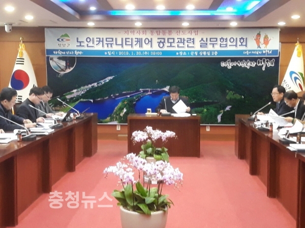 충남 청양군이(군수 김돈곤)이 30일 군청 2층 상황실에서 ‘지역사회 통합돌봄 선도사업’ 실무협의회를 개최, 기본계획서를 심도 있게 검토하면서 보건복지부 공모사업 준비에 최선을 다하기로 했다.