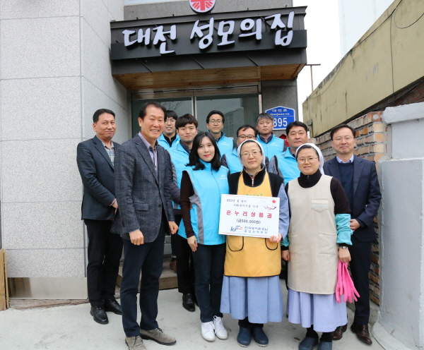 한국농어촌공사 충남지역본부는 31일 설 명절을 앞두고 나눔문화 확산과 소외계층에 대한 이웃 사랑을 실천하기 위해 사회복지시설인 대전 성모의 집을 방문하여 온누리상품권을 전달하고 봉사활동을 펼쳤다.