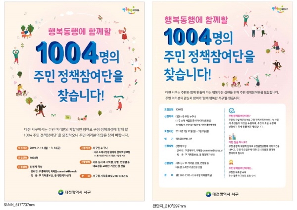 1004 주민 정책참여단은 구정 정책 과정 전반에 주민이 참여하고 주민과 소통하는 ‘주민이 주인인 자치도시’를 구현하기 위한 대전 서구의 민선 7기 역점사업이다.