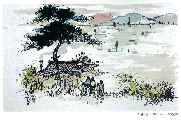 김기성作, 시골사랑, 50×37cm, 수묵담채