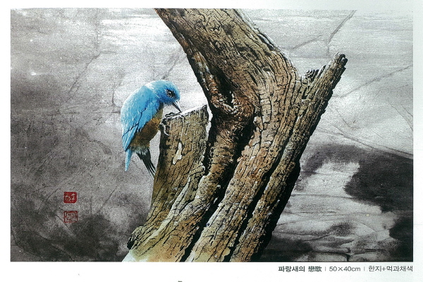 이헌용作, 파랑새의 戀歌, 50×40cm, 한지+먹과채색