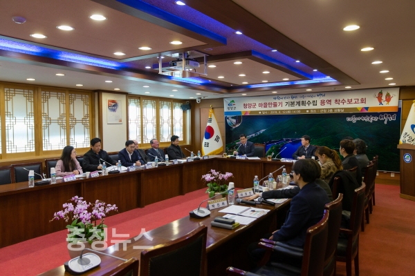 군은 12일 상황실에서 ‘청양군 마을 만들기(5개년 계획) 기본계획용역 착수보고회’를 갖고, 기존 마을환경이 가진 문제점을 진단하면서 주민 삶의 질 향상을 위한 효율적 마을 만들기 방안을 모색했다. 이날 보고회에는 김돈곤 군수, 청양군마을만들기지원센터 관계자, 지역재단 지역순환경제센터(용역사) 관계자 등이 참석했다.