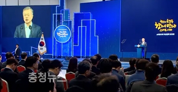 문재인 대통령은 13일 부산 벡스코에서 열린 '스마트시티 혁신전략 보고회'에 참석 부산시와 세종시를 세계에서 가장 앞서나가는 스마트시티로 조성하기 위해 관계부처, 민간 기업, 각계 전문가들이 역량을 결집해달라"고 당부했다.