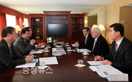 박성효 대전시장은 5일 오전(현지시간) 미국 뉴저지 소재 크라운 프라자 글우드호텔에서 세계 명품 아울렛 시장 1위를 차지하고 있는 미국 첼시프로퍼티크룹 마이클 클락(Michael J. Clark) 대표를 만나 '첼시 프리미엄 아울렛' 대전 유치를 위한 방안을 협의했다.
