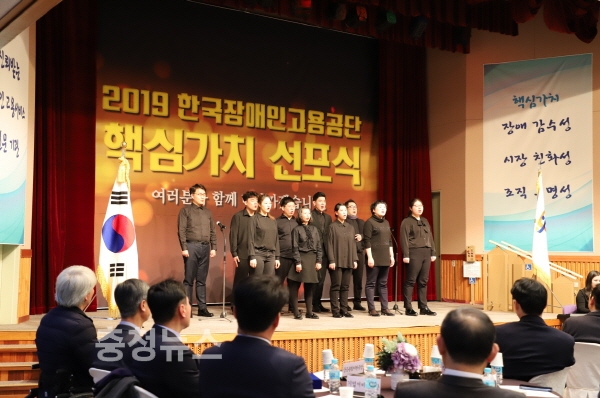 ㈜뉴딘파스텔(대표이사 한태정)의 ‘골프존파스텔합창단’은 지난 13일(수), 경기도 성남시 분당구에 위치한 한국장애인고용공단 본부에서 열린 ‘2019 한국장애인고용공단 핵심가치 선포식’에서 성황리에 초청 공연을 펼쳤다.