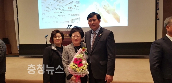 청양군의회 구기수 의장이 15일 서울프레스센터에서 열린 2019 지구촌희망펜상 의정부문 대상을 받았다.